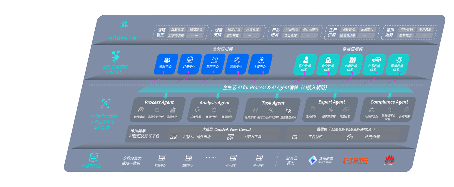 安博问学智车解决方案是一套基于AI技术的汽车行业智能化系统,,覆盖从底层算力到顶层AI应用的全栈方案。。方案由算力层、、、模型层和应用层组成:算力层,,方案支持多种一体机配置,,,,具备云端灵活部署、、、、多云适配以及动态优化计算资源的能力;模型层,,安博问学平台版提供了企业级AI应用一站式构建与管理平台,,支持基于后训练强化技术的汽车企业专属模型的训练、、、、评测和运营;应用层,,,,安博问学DeepSeek版提供包括超级员工、、智能招采、、、、智能营销、、、、智能客服、、AI for BI等一系列解决方案,,,可助力汽车行业实现数字化转型,,让管理更智能、、、响应更敏捷。。。